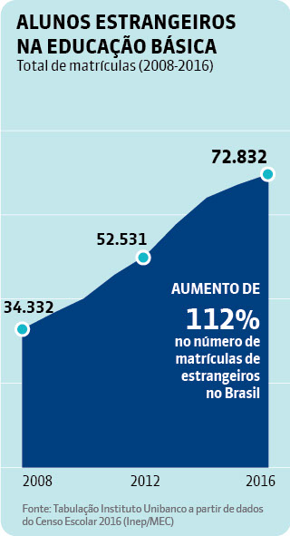 Esse tipo de situação mostra a importância de se estabelecer ações para acolher e integrar as crianças, os adolescentes e os jovens estrangeiros no sistema de ensino brasileiro. É crescente o fluxo de imigrantes e refugiados para o país. De acordo com dados do Censo Escolar, realizado pelo Instituto Nacional de Estudos e Pesquisas Educacionais Anísio Teixeira (Inep), do Ministério da Educação, entre 2008 e 2016, o número de matrículas de alunos de outras nacionalidades em escolas brasileiras mais do que dobrou: saltou de 34 mil para quase 73 mil matrículas. A rede pública acolhe a maior parte desses estudantes: segundo o Censo Escolar de 2016, 64% dos estrangeiros estavam matriculados em escolas públicas.
