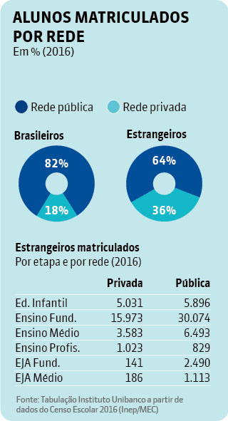 No estado de São Paulo, os alunos imigrantes se dividem em mais de 80 nacionalidades. De acordo com dados do Cadastro do Aluno da Secretaria Estadual da Educação, em novembro de 2017, a rede contabilizava 10.298 estrangeiros matriculados. Dentre eles, estão mais de quatro mil bolivianos, 1,2 mil japoneses, cerca de 550 angolanos e aproximadamente 540 haitianos.