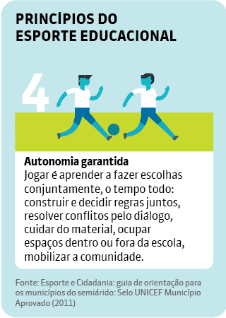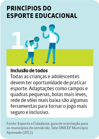 Vanderson Berbart, gerente do programa Impulsiona, do Instituto Península, voltado à formação de educadores da rede pública, ressalta que, mesmo com infraestrutura longe da ideal, as escolas devem buscar oferecer diferentes modalidades esportivas. Isso permite estimular não apenas o desenvolvimento físico, mas também competências socioemocionais dos estudantes, como responsabilidade, companheirismo, respeito às diferenças, liderança, cooperação, autocontrole, tolerância, capacidade de lidar com a frustração, disciplina, concentração e comunicação. Além disso, fortalece a cultura esportiva local, dando destaque a modalidades tradicionais da região. “Quando você amplia o cardápio esportivo, mais alunos podem participar, porque todo mundo começa do zero e você começa a trazer as meninas, as crianças com deficiência, aqueles que não têm tanta habilidade.”