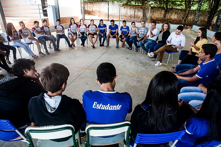 Em vez de chegarem um dia e se depararem com a reforma feita por funcionários externos à escola, alunos e profissionais trabalharam juntos na revitalização de um ambiente que até então incluía paredes pichadas, carteiras sujas com chicletes colados e espaços precários e mal utilizados. Na avaliação das alunas, foi a partir dessa ação coletiva que a sensação de pertencimento e o cuidado pelo espaço público da escola aumentou. Esse maior incentivo à participação dos alunos na gestão da escola é outra característica que os gestores goianos identificam como influência da parceria com o Instituto Unibanco.