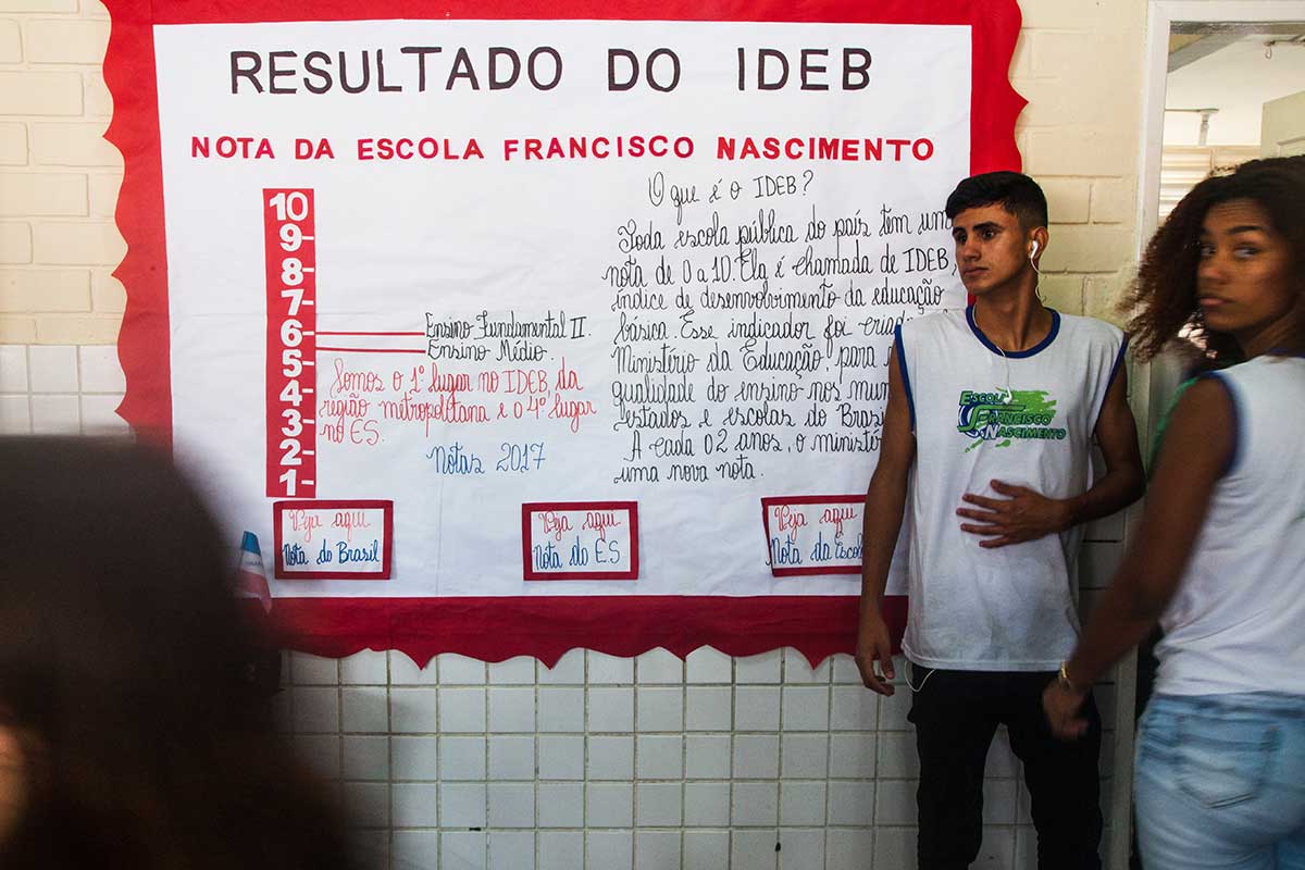 Esse mesmo movimento facilitado pelo uso pedagógico das avaliações é verificado no nível da escola. Na Francisco Nascimento, no Espírito Santo, a equipe gestora mantém na sala dos professores um quadro com os descritores (letras e números que indicam qual habilidade ou competência foi medida na avaliação) que precisam ser trabalhados pela escola. A partir das lacunas de aprendizagem identificadas, são sugeridas ações que vão de listas de exercícios aos alunos à capacitação dos professores para trabalharem aquele conteúdo.